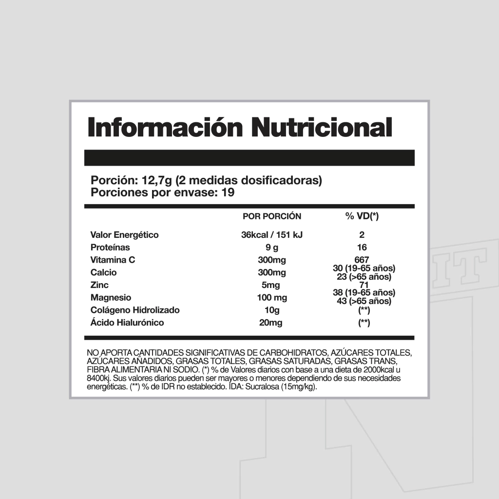 Cada porción aporta 12,7 g de colágeno por porcion.