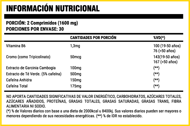 Tomar 2 comprimidos al día, 30 minutos antes del almuerzo. Los días de entrenamiento, consumir 45 minutos antes de entrenar.
